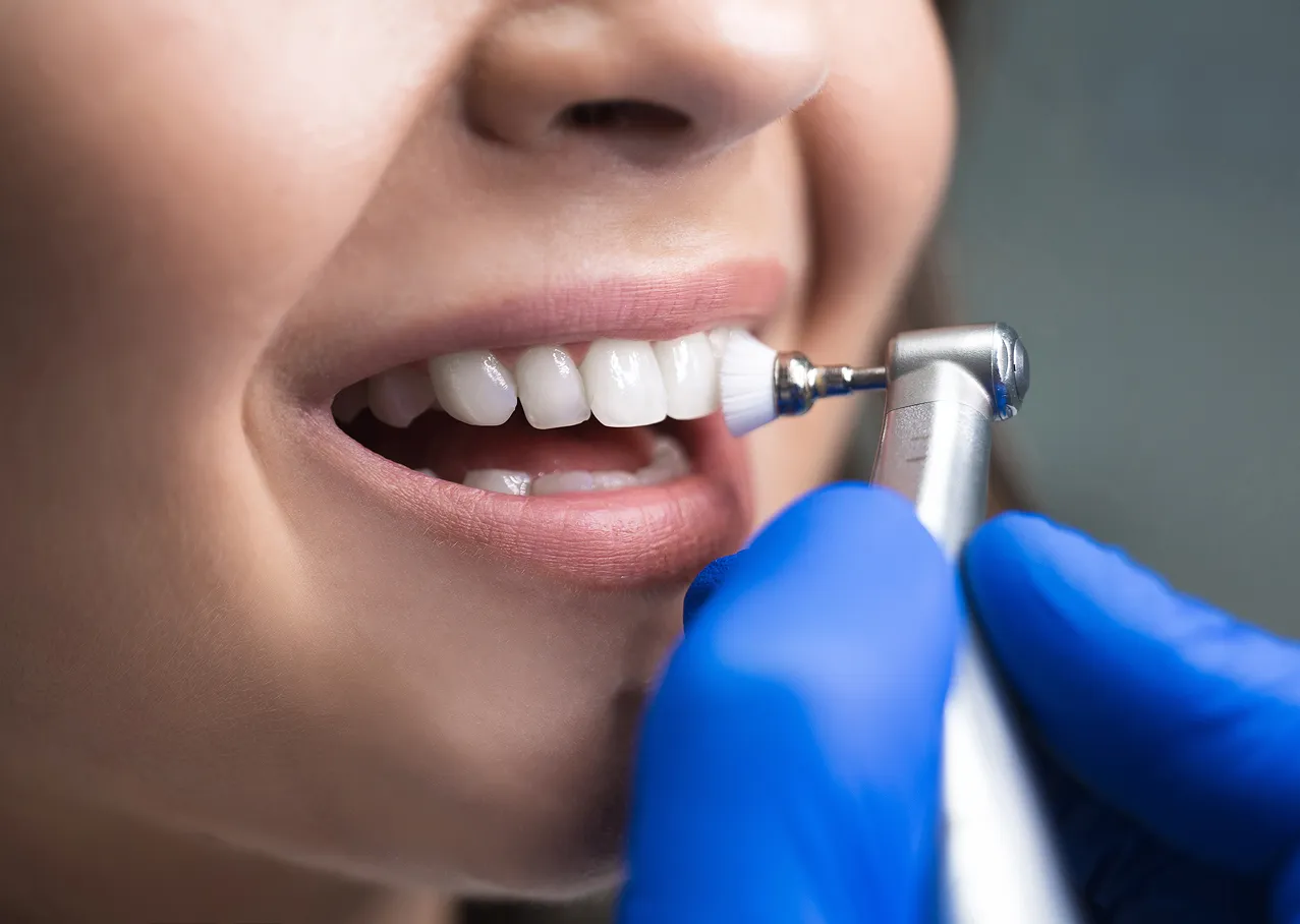 The first thing your dental hygienist will do is check the inside of your mouth for signs of decay, cavities or gum disease. They will then give your teeth and gums a thorough cleaning with special equipment like an Airflow tooth polisher or an ultrasonic scaler. This process removes stains and debris from your teeth. Following the cleaning, will give your teeth a gentle polish using a power brush and a special toothpaste that contains a little bit of grit to finish the job. If needed, the hygienist will also floss your teeth for a complete clean.